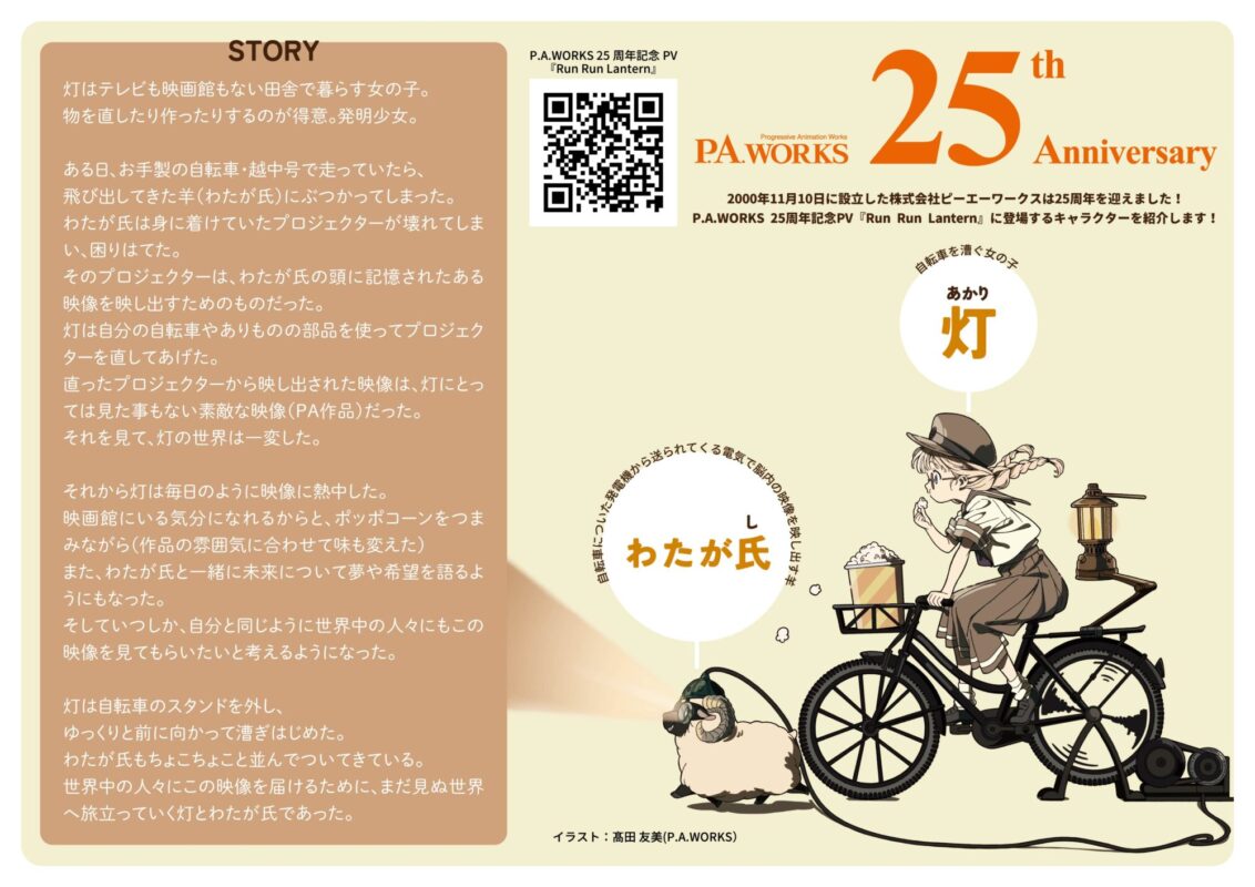 10月19日(日)に南砺市クリエイタープラザ、および隣接するP.A.WORKS社内で開催された同社25周年記念イベント「灯祭-ランタンサイ-」の模様や当日に発表されたPVが、YouTubeのP.A.WORKS公式チャンネルにて公開されています。来場が叶わなかった皆さまも、イベントの様子を感じていただけますので是非ご覧ください!
